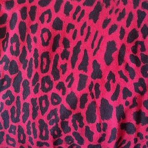 Stylish V-neck sweater with bold leopard print. Features a comfortable fit and long sleeves. Perfect for casual outings.