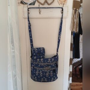 Elegant crossbody with seahorse design. Blue and white. Matching wallet! In amazing condition.