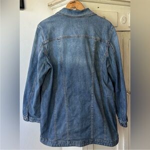Chico's | Women’s Medium Blue Denim Long Line Button Front Jean Jacket Sz 12-14