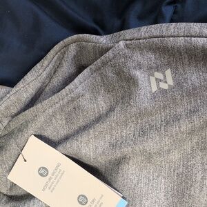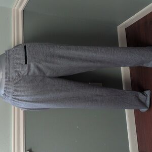 Light gray joggers with drawstring waist. Soft fabric for everyday comfort. Ideal for casual wear and any sport activities. Two pockets on the front and one zipper on the back. Quick dry material. Moisture wicking and reflective accents. Lightly insulated material will keep you warm and cozy. Size L . Brand new with the tag.