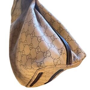 Auth. Vintage Gucci Tan GG Canvas Tote/Shoulder Bag. Pre-loved. Bag measures approximately 12.5 inches tall by 11 inches wide & 4 inches deep. Please note normal signs of wear/use. Some small rubbings to bottom corners. See photos. Leather shoulder straps are in good condition. No tears or issues with glazing. Interior is very clean. Minor vintage smell. Please note stain spot on one side of bag. Not sure what it’s from. Overall good vintage condition with normal signs of wear/use. Would make a really nice starter bag for someone. (#421A)