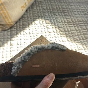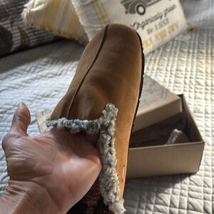 Free People Cozy Tan Slippers with Knit Trim