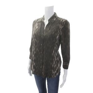 L'Agence Womens Printed Collar Long Sleeve Button Down Shirt Brown Size S