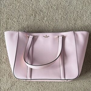 Chic cerise (pink) tote with a monogrammed coated canvas and leather trim. Ideal for everyday style.