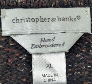 Christopher & Banks XL Hand Embroidered Brown Cardigan Sweater With Pumpkins