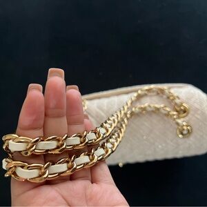 Karl Lagerfeld Tweed Beige Shoulder Bag with Gold Chain