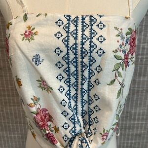 Rachel Zoe Linen Blend Floral Halter Top Tie Front