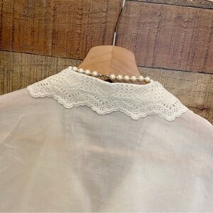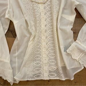 L Ralph Lauren Romantic Button Down Blouse Eyelet Lace Details Cream