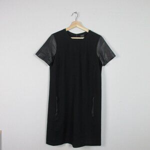 Club Monaco Women's Cecilia Shift Dress Casual Leather Sleeve Size 6 Black 574