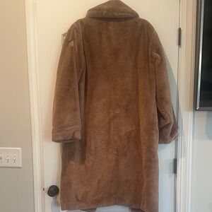 Experience cozy comfort with the ALO Yoga Faux Fur Trench Coat. Features a plush texture and rich brown hue. Color is Toasted Almond.