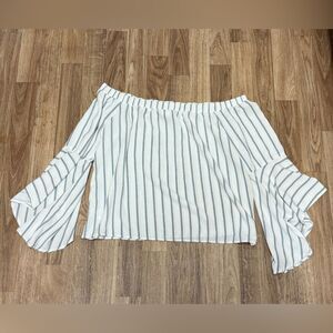 Shyanne Off Shoulder Boho Western Striped Bell Sleeve Blouse