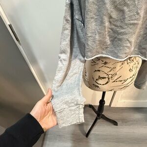 Soft heather gray knit top by Papaya. Comfortable and stylish. Cropped sweatshirt with a Chicago college-style graphic. Heather gray color, soft and comfortable fabric. Features an adjustable front drawstring detail to cinch and customize the fit. Large front graphic with sporty emblem and bold lettering. Perfect for a casual, trendy, urban look. Excellent condition.