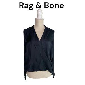 Rag & Bone Dean Shirt Black Silk Size Small New with tags. Gorgeous and sophisticated drape front silk shirt. High low blouse. Buttons at cuff. Lovely drape effect at the front. Brand new with tags. Retails $350.00