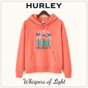 Hurley hoodie, Hurley sweatshirt, tropical hoodie, coral hoodie, sunset hoodie, surfer hoodie, beach style, palm tree hoodie, women’s Hurley L, cozy hoodie, fleece hoodie, island vibes, casual streetwear, comfy sweatshirt, Whispers of Light closet