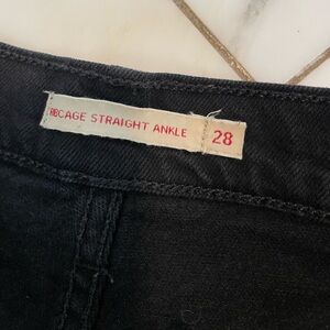 Classic straight leg jeans. Frayed hem. Timeless style.
