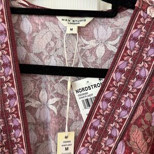 ♥️Max Studio Floral midi Dress wine plum NEW size medium v-neck