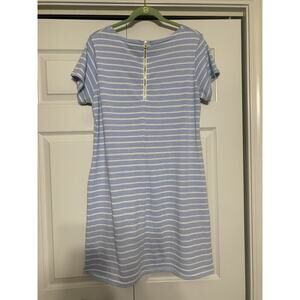 Sail to Sable Blue White Striped Shift Dress Nautical Gold Zipper Size XL