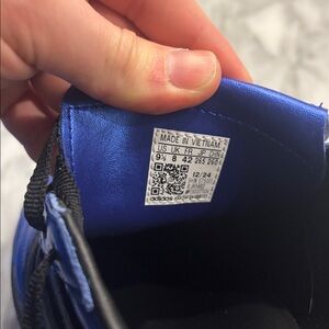 Sleek black and blue design. Comfortable fit. Ideal for sports and casual wear.