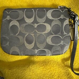Elegant wristlet with iconic Coach pattern. Includes a sleek wrist strap and metallic finish. I added a small hangtag