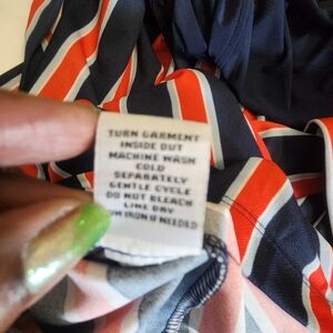 Emma & Michele Red & Blue Striped Jumpsuit with Navy Blue Top.