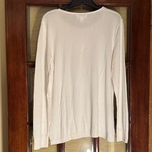 Chic ivory long sleeve top by Calvin Klein. Features elegant studded design. Perfect for versatile styling.