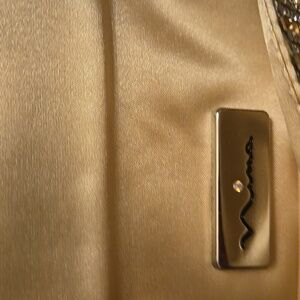 Chic clutch with gold and silver stripes. Ideal for special occasions. Elevate your style effortlessly.