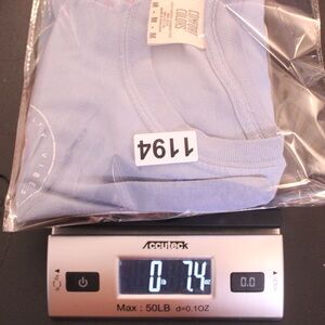 Condition: Pre-owned. Has a small hole in the sleeve and light discoloration in the center of the shirt (see photos). Please review all photos for details and measurements.
