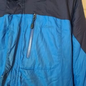 L.L. Bean Men's Large Primaloft Parka Coat Jacket. 24" pit-to-pit. Removable hood. The Jacket has some stains from wear, I tried to show in the pics, but mostly on the front, is a but dingy overall. Haven't tried really to remove it. Big heavy warm Jacket. Selling as is. Smoke free home.