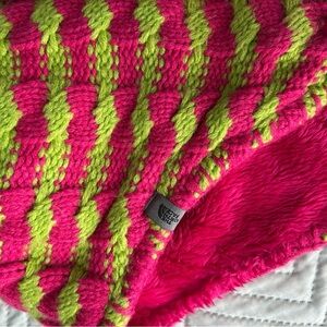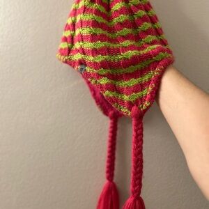 Striped knit hat with braided tassels. Ideal for casual outings.