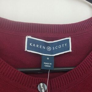 Karen Scott Small Merlot Cardigan Sweater (AQ)