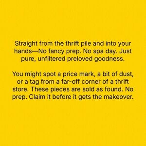Straight from the thrift pile and into your hands—No fancy prep. No spa day. Just pure, unfiltered preloved goodness.