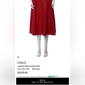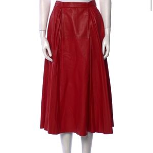 Brand new woman’s red genuine leather Gucci pleated skirt. Tags still attached. Never worn. Very light leather wrinkles due to being on a hanger and soft protector sheet since purchase