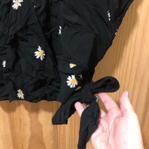 Cute black wrap blouse with floral (daisies) pattern from Madewell. Cropped fit. Excellent used condition