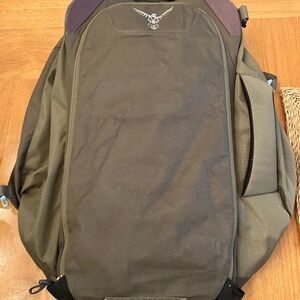 Stylish Osprey backpack with black and olive tones. Perfect for daily adventures. Durable and comfortable design. Like new only used a few times. Can also be used as carry on plane