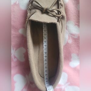I bought these online last spring but only wore a few times indoors as they are a half size too big for me, so I want to pass them on to someone who they will fit better. I tried to measure inside and it seems to be about 24.5cm length toe to heel.