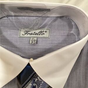 Fratello Men's Striped Blue Dress Shirt with Tie