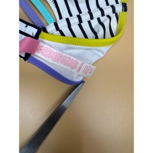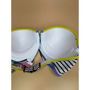 Victoria's Secret Striped Bikini 2 Piece Halter Top Push Up Size 32D Medium Bott
