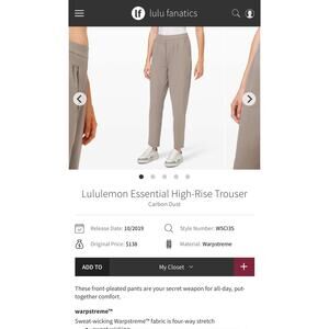 Lululemon Women’s Essential High-Rise Trouser Size 4