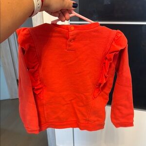 Charming Catimini sweatshirt with a playful raccoon print. Features vibrant red color and delightful ruffle accents.