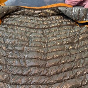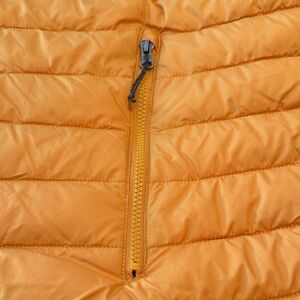 Columbia winter vest in a rich golden yellow hue. Features zip closure and practical side pockets.