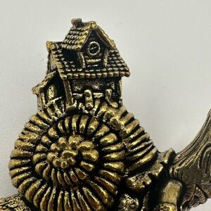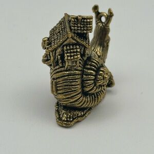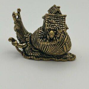 Brass Snail with House and Creature Miniature Figurine Statue