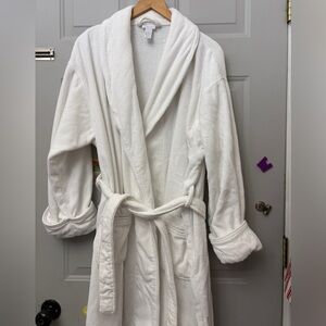 Experience ultimate comfort with this luxurious white plush robe, designed for cozy relaxation. Perfect for unwinding in style. 100% Cotton