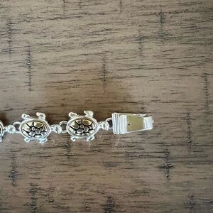Silver-Plated Sea Turtle Link Bracelet with A Magnetic Clasp