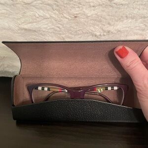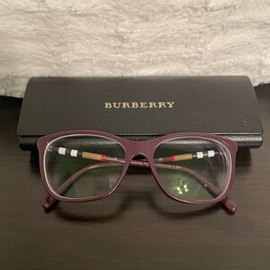 Elegant Burberry eyeglasses in a deep purple shade. Includes a sleek branded case. These are prescription lenses but you can have your own prescription put in the frames or make them sunglasses. 😎