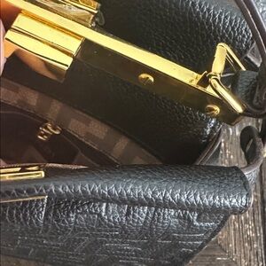 Black Designer Inspired Logo Handbag with Gold Hardware