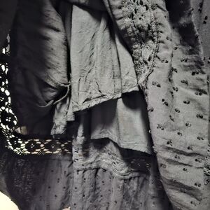 Cute black eyelet midi dress with button-front detail from Ann Taylor LOFT. Sleeveless and lined, size 4. Black marking on the tag to prevent retail returns.