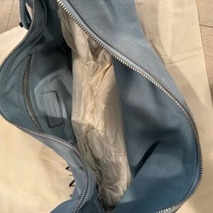 Stylish sky blue hobo bag by Banana Republic. Soft suede material. Ideal for versatile wear.