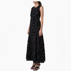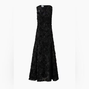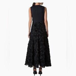 This sleeveless A-line midi-dress is intricately decorated with 3D carnation tulle embroidery.