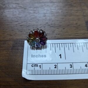 Multicolor Flower Gemstone Earrings. Stamped India STS.