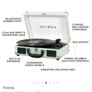 Enjoy your favorite vinyl records with this pastel Victrola Record Player. Bought and never used. Some parts are still wrapped in plastic.